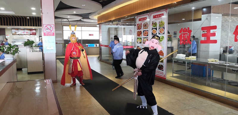 接下來(lái)進(jìn)行了萬(wàn)眾矚目的砸金蛋環(huán)節(jié),觀眾們踴躍參與,現(xiàn)場(chǎng)氣氛火爆,期間還有藝人扮作豬八戒、孫悟空和小丑為觀眾表演并贈(zèng)送禮物,互動(dòng)氣氛十分融洽。