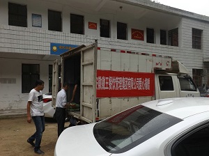 終于到達大山村,工作人員將我司捐贈物資從車內(nèi)搬出