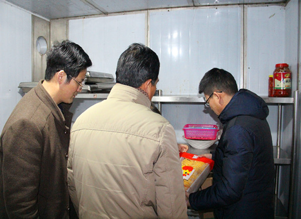 汪衛(wèi)華一行先后來到食品加工操作區(qū)、食品庫(kù)房、冷藏設(shè)施、洗消場(chǎng)所等食堂功能區(qū),細(xì)致檢查了各功能區(qū)的衛(wèi)生狀況、食品留樣和相關(guān)食品安全情況,仔細(xì)詢問了用電用氣情況及相關(guān)人員安全培訓(xùn)是否到位等。